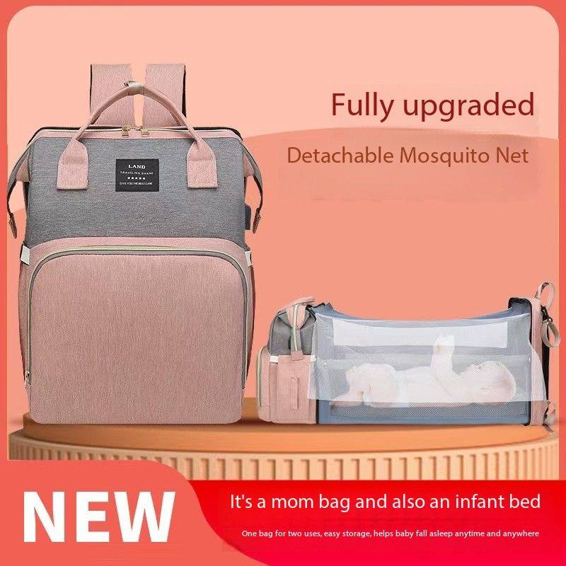 Deluxe Bag Storage Travel Baby Mommy Diaper Portable Bag Folding Mommy Bag Backpack with Changing Bed