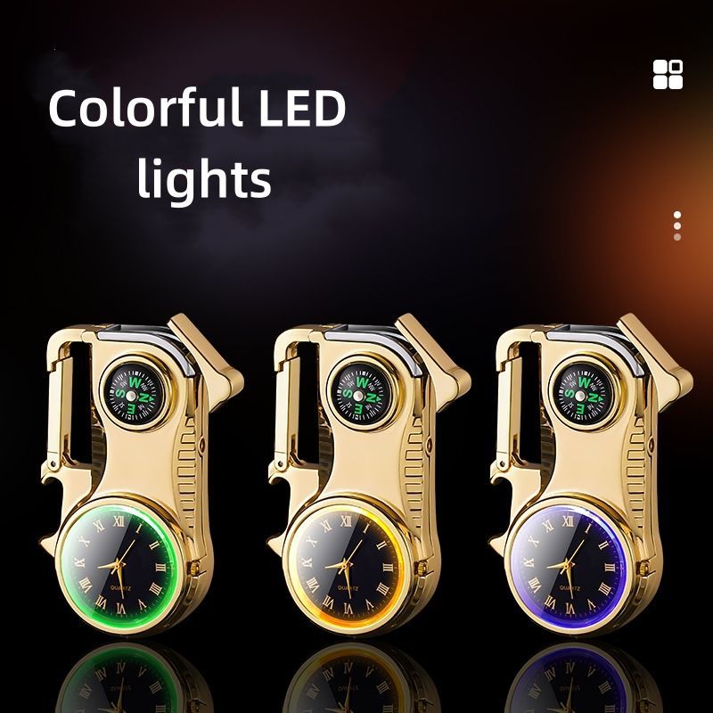 Multi-functional outdoor lighter, windproof red flame, refillable lighter, with compass, clock, and key chain.